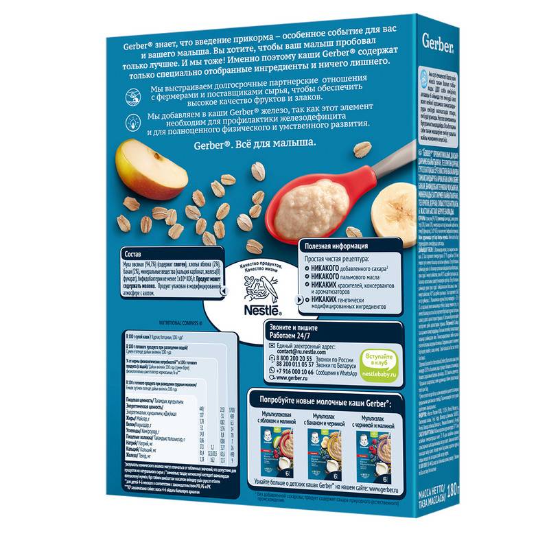 Gerber знает, что введение прикорма - особенное событие для вас и вашего малыша. Вы хотите, чтобы ваш малыш пробовал только лучшее. И мы тоже! Именно поэтому каши Gerber содержат только специально отобранные ингредиенты и ничего лишнего.