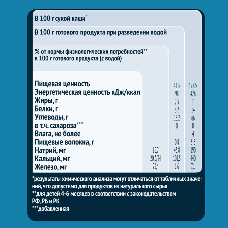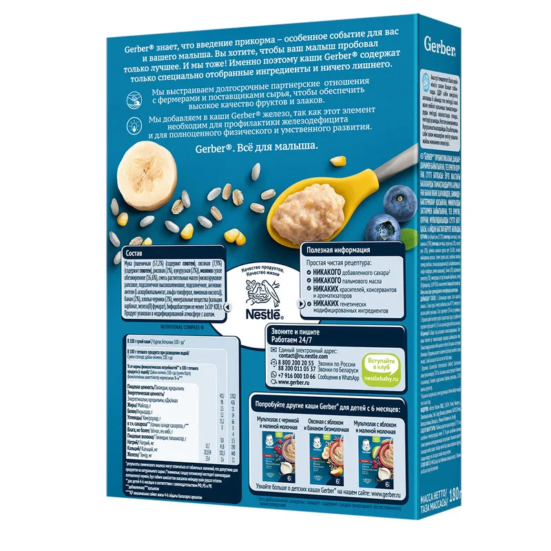 We add to the porridge Gerber iron, as this element is necessary for the Prevention of iron deficiency and for full physical and mental development.