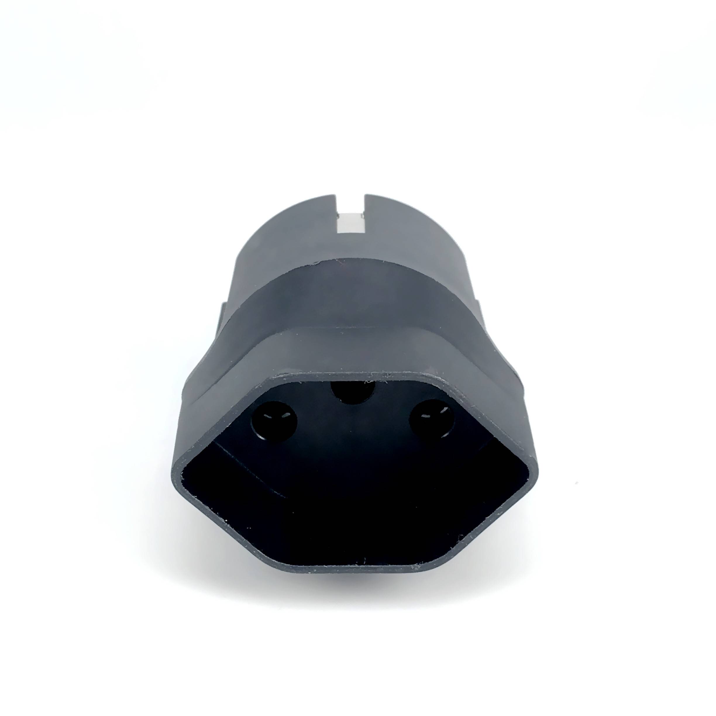 Номинальный ток: 10AНоминальное напряжение: 250 ВЭффективная нагрузка: 2,5 кВтМатериал корпуса: АБС Защита окружающей среды огнестойкийВходная часть (вилка): немецкие Стандартные два круглых штифтаВыход (вилка) часть: Швейцарский Стандарт три круглых контактаХарактеристика: самоблокирующаяся внутренняя структура.(Примечание: самоблокирующаяся внутренняя конструкция вставляется в штепсельную вилку, не вытягивается, используйте осторожность.)Цвет: черныйСертификация: CE, ROHSПрименение: путешествие, домПосылка включает в себя: