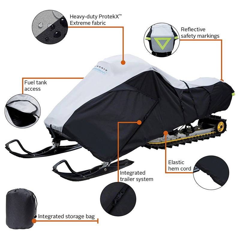 [Супер водонепроницаемый] чехол для снегохода изготовлен из высококачественной ткани Оксфорд с водонепроницаемым полиуретановым покрытием на внутреннем слое. Плотная ткань и водонепроницаемое покрытие обеспечивают непревзойденную водонепроницаемость.
