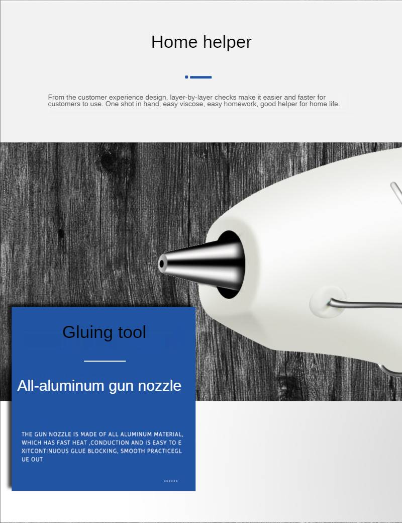 Это мини-пистолет для клея 10 Вт, который широко используется для скрепления древесины, пластика, волоконных изделий, бумажных изделий и т. д.