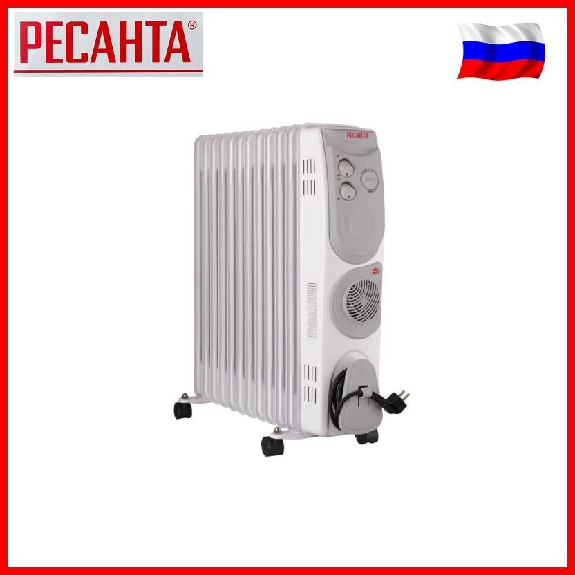 Качественный масляный радиатор РЕСАНТА ОМ-12НВ со встроенным вентилятором сможет обогревать помещение площадью до 25 кв.м. У него 12 секций и можно выбрать 3 варианта мощности работы. Нагреваясь сам, он затем, благодаря вентилятору, доставляет прогретый воздух на значительное от себя расстояние. Кроме того, он наделен термостатом с удобной механической регулировкой.
