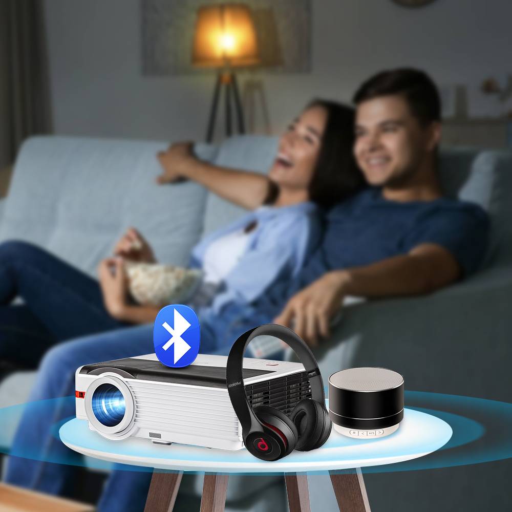 Светодиодный проектор можно использовать как устройство с синими зубьями, вы можете использовать проектор для подключения ко многим медиа-устройствам. Он может подключаться к динамику, наушникам.
