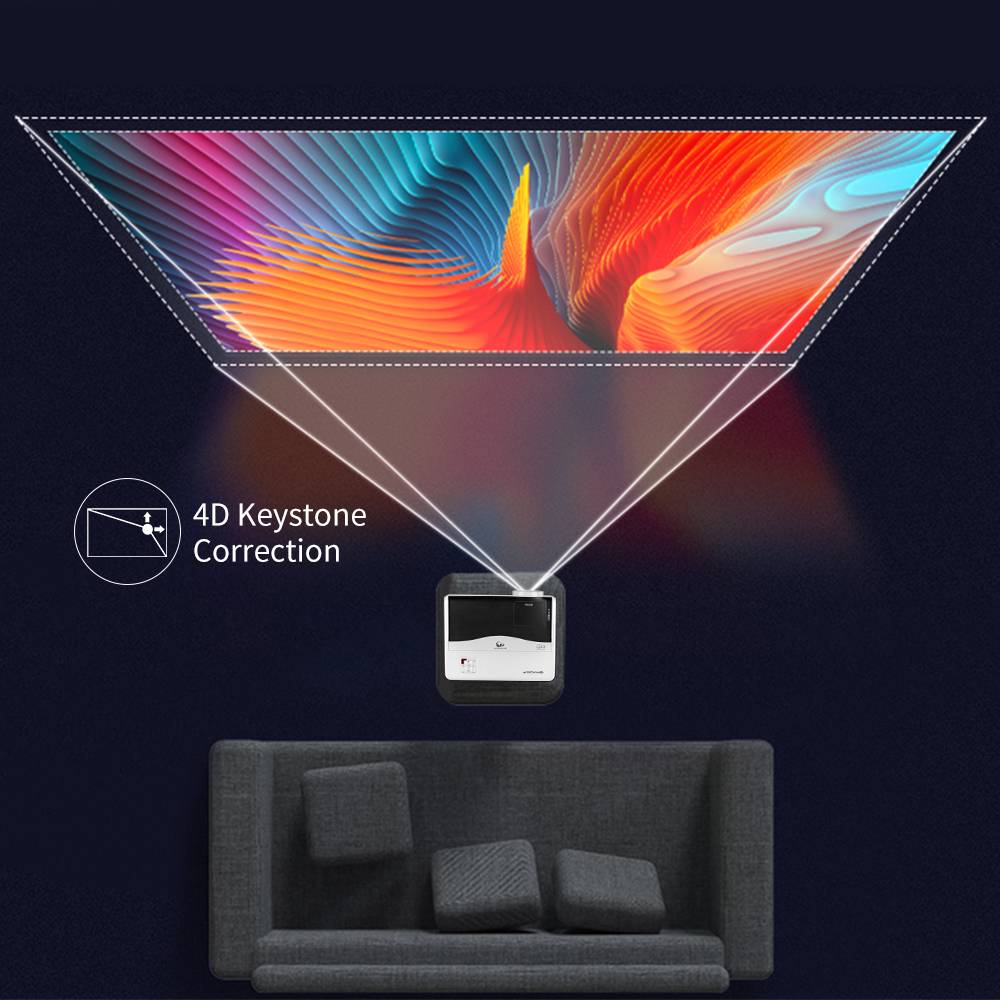 Домашний проектор имеет 4d-коррекцию трапецеидальных искажений, вы можете настроить изображение под наиболее подходящим вам углом. Вам не нужно регулировать положение проектора. Вы можете смотреть фильмы в комнате.