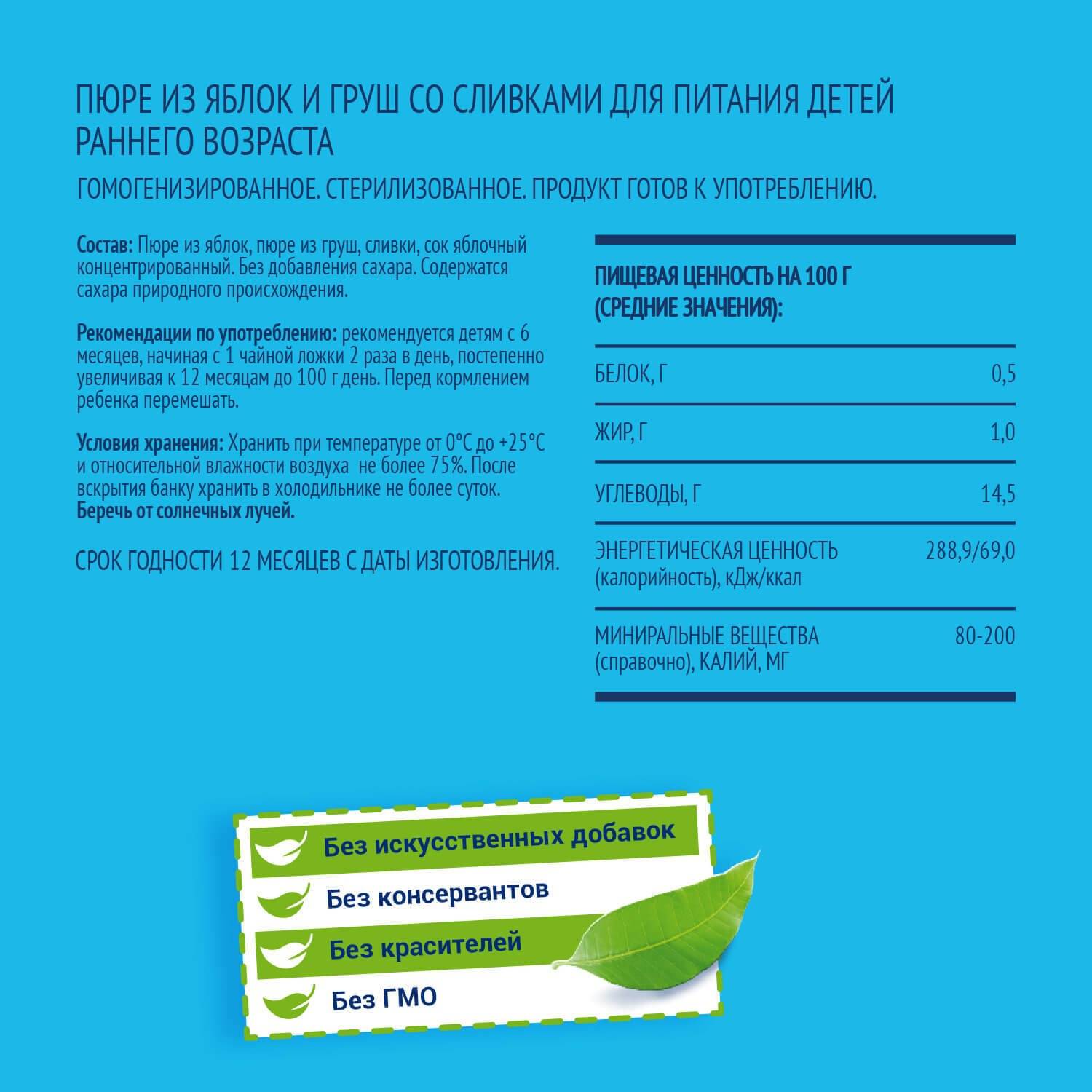 Фруктовое пюре яблок и груш с кремом без сахара для питания детей раннего возраста