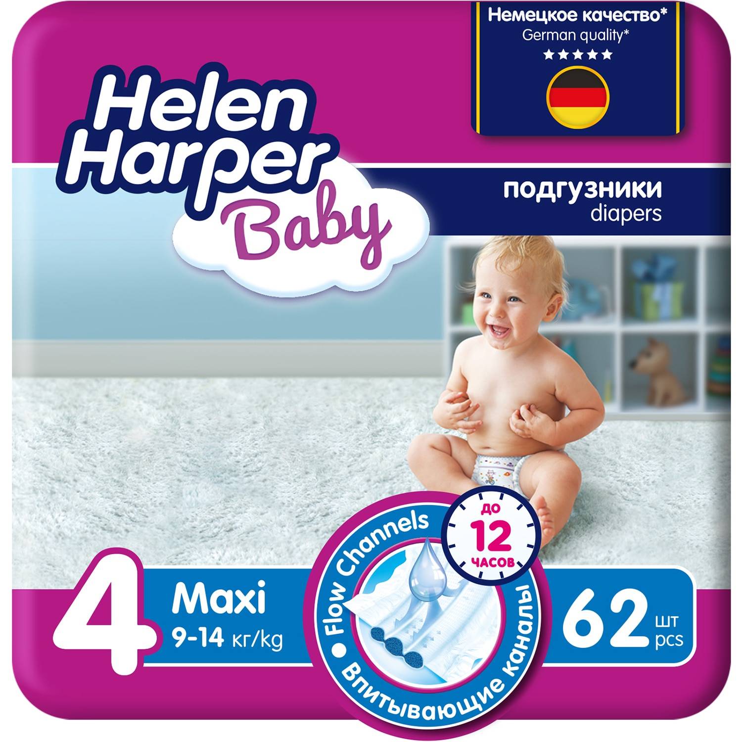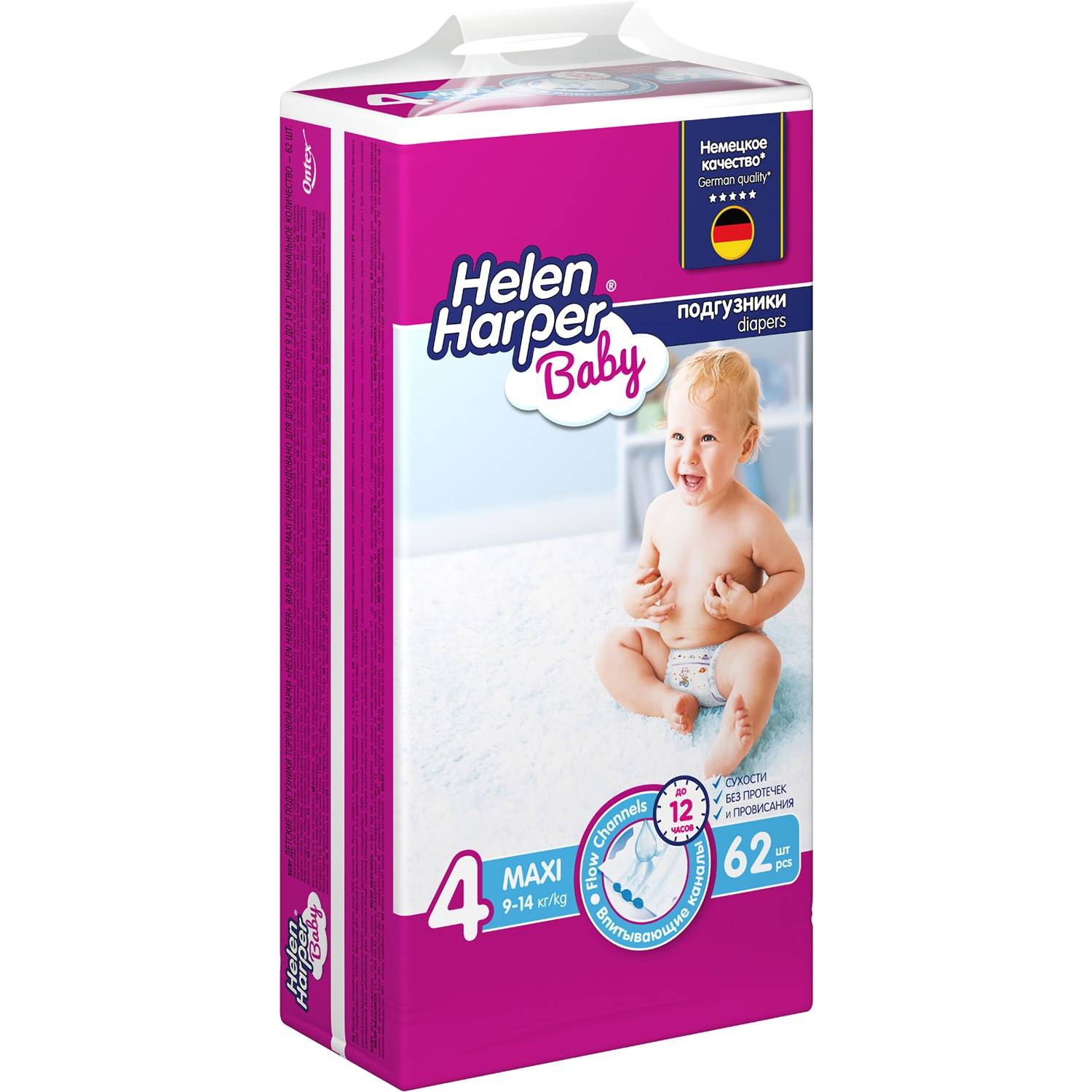Обновленные подгузники Helen Harper Baby с тремя впитывающими каналами созданы специально для комфорта ваших малышей. Они обеспечивают сухость без протечек и провисания между ножек. Впитывающие каналы быстро и равномерно распределяют влагу, поэтому она быстро впитывается и надежно блокируется внутри. Благодаря эластичным боковинкам и двойным резиночкам подгузник отлично прилегает, не стесняя движений и не натирая нежную кожу ребенка. Дышащий внешний слой обеспечивает свободную циркуляцию воздуха. Многоразовые липучки гарантируют удобство в использовании. Подгузники Helen Harper Baby не содержат отдушек и дерматологически протестированы.