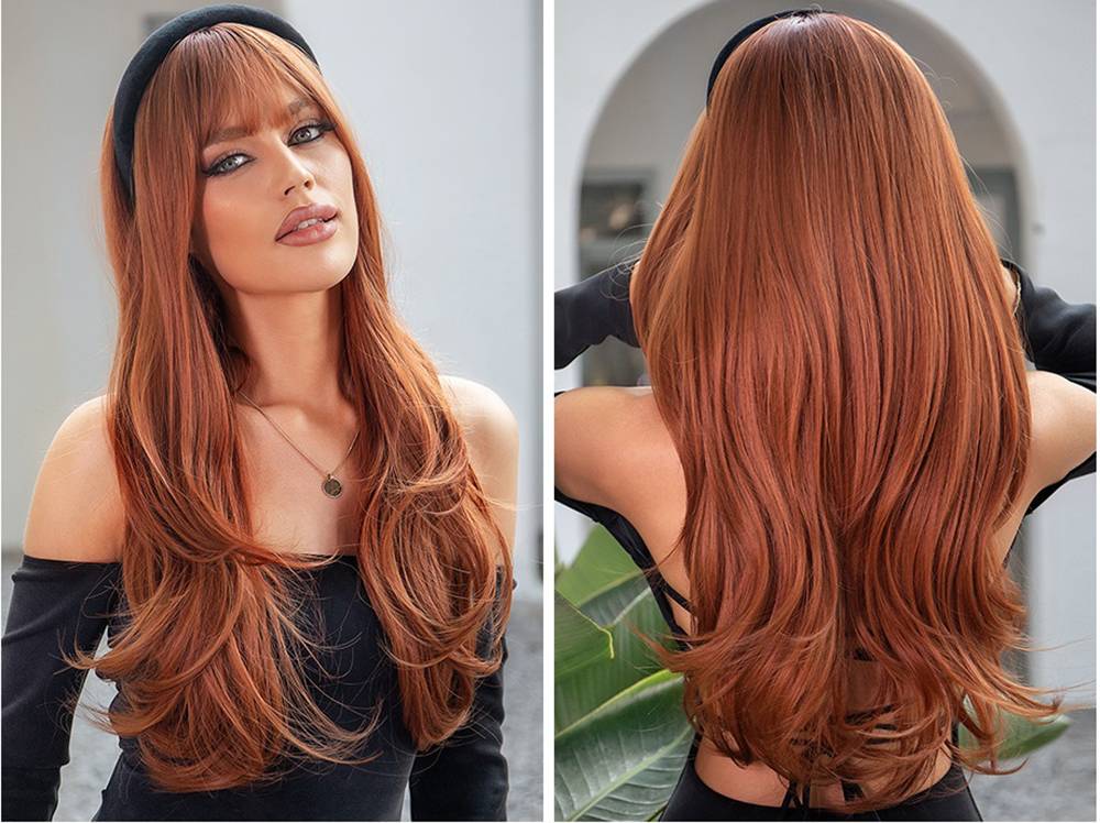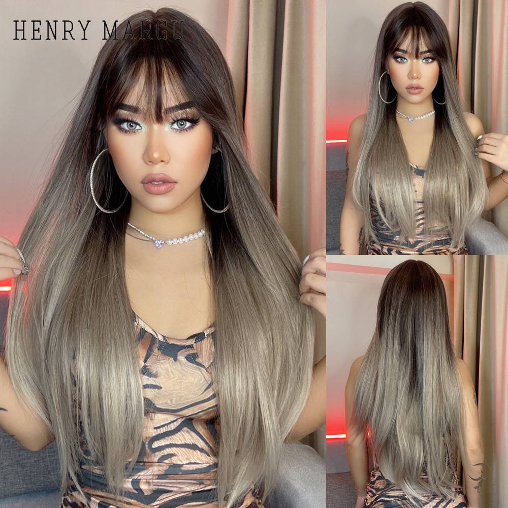 Длинные прямые синтетические парики HENRY MARGU с челкой, коричневый, красный, медный имбирный аппарат, парик для женщин, косплей, термостойкие