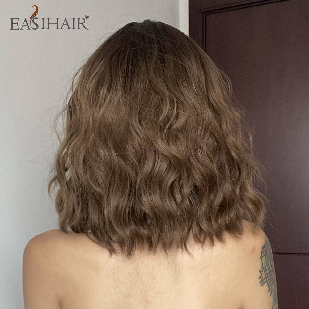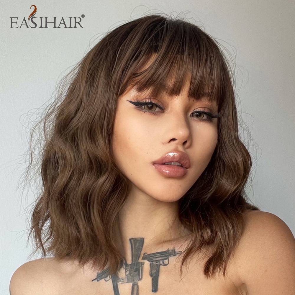 Женские парики из синтетического волокна EASIHAIR, длинные, коричневые, с челкой средней длины, волнистые, вечерние, повседневные, термостойкие