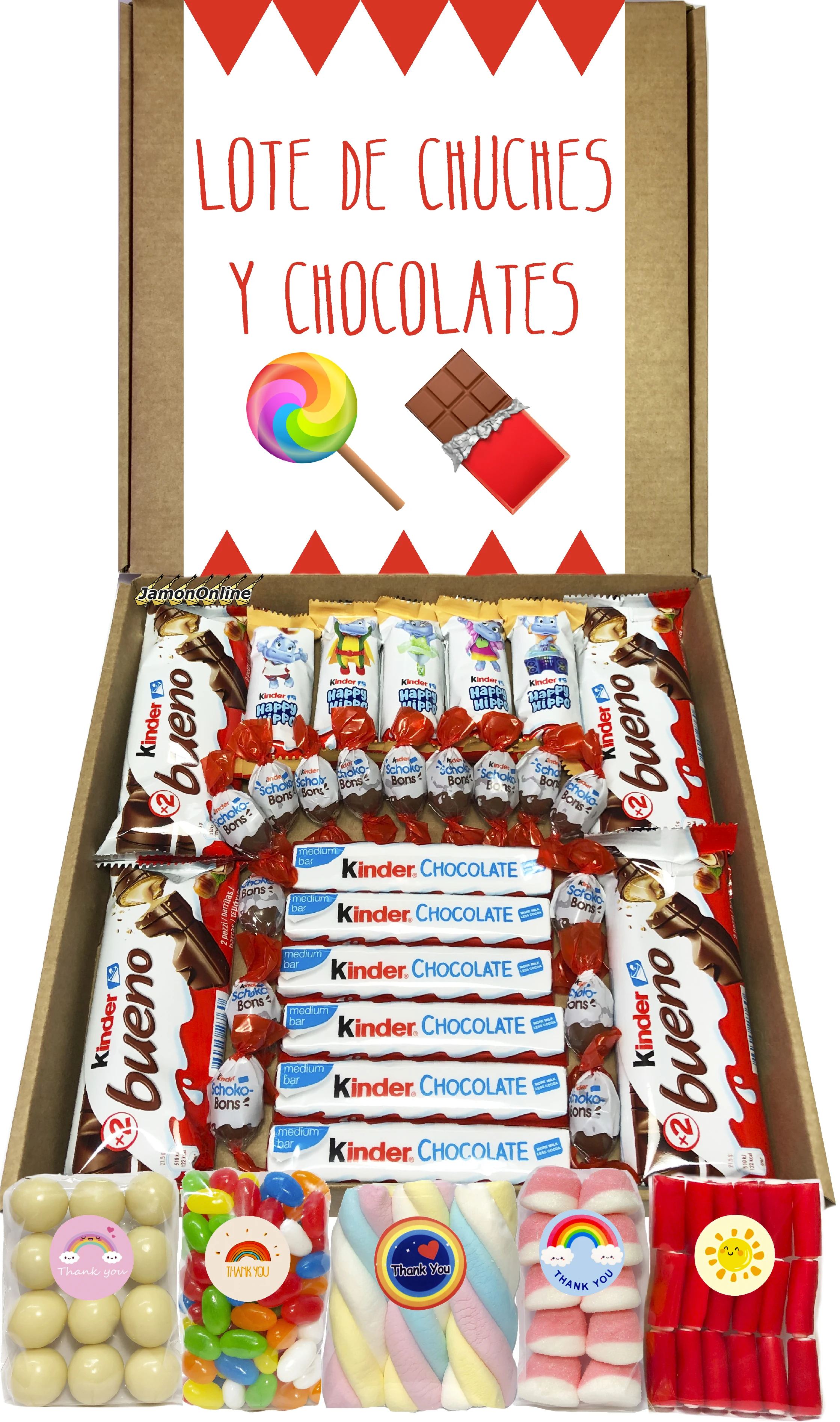 🍫🍭В лоте вы найдете 5 Kinder Happy Hippos, 4 Kinder good, 6 Kinder Chocolate Maxi, 15 Kinder Schoko-Bons, 1 мешок белых шоколадных шариков 1 мешок трехцветных облаков, 1 пакет красных и белых палочек и 1 пакет розовых и белых поцелуев.