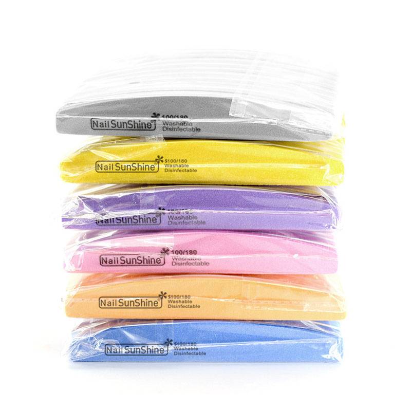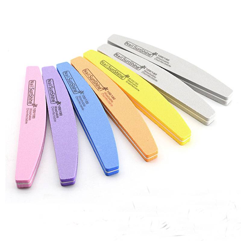 10 шт./лот полулуние двухсторонние пилки для ногтей буфер 100/180 Полировка Шлифовка Маникюр Педикюр пилка инструменты