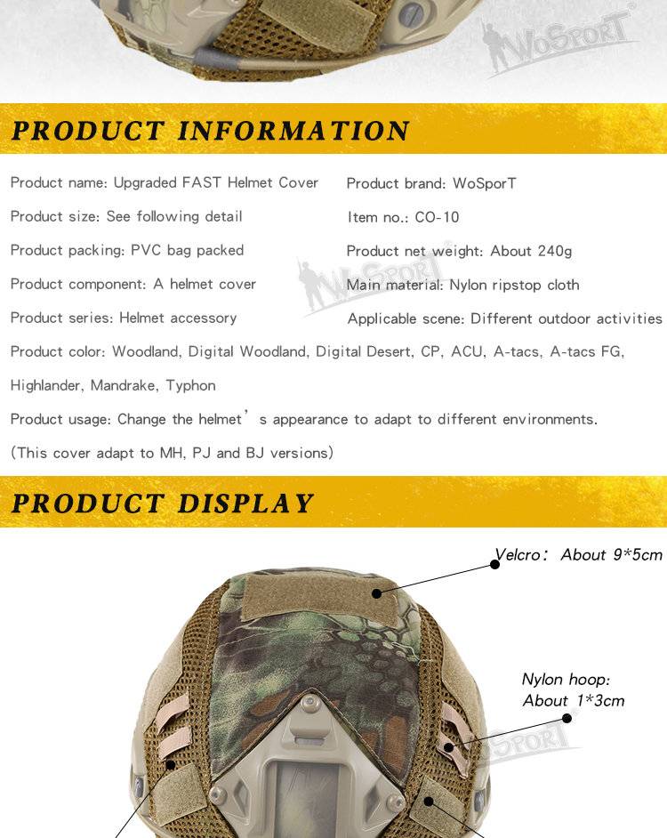 -- Название продукта: Усовершенствованный чехол для шлема -Номер изделия: CO-10 -- Упаковка продукта: ПВХ мешки -- Размер продукта: 31*22 см -Вес нетто продукта: около 0,004 кг -Вес брутто: около 0,05 кг -- Аксессуары продукта: ткань для шлема -- Подходящая сцена: для активного отдыха -- Основной материал: нейлон