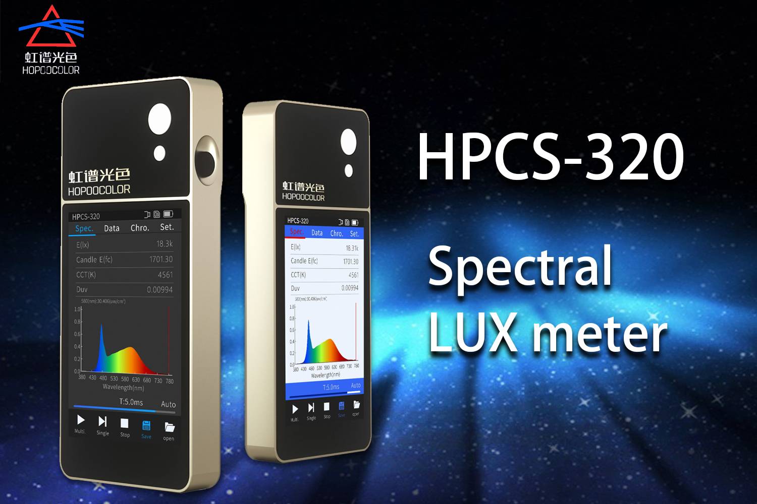HPCS-320 спектральный irradiancecolorimeter, интегрированный спектр, CCT,CRI,Lux, облучение. Etcпараметры в одном. С 5 inchtouch экраном, в режиме реального времени отображение параметров измерения и кривых, использовать удобно и быстро. Не только измеряет светодиодный источник широкого спектра, но и измеряет