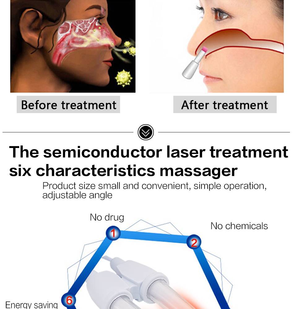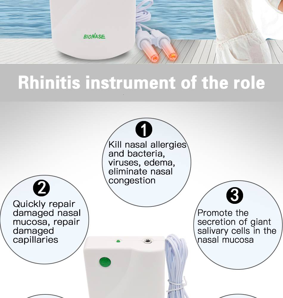 Прибор фототерапии ринита непосредственно облучает повреждения носовой полости низкоэнергетическим узкочастотным холодным лазером с длиной волны 660 нм. 660 нм Низкоэнергетический узкочастотный холодный лазер-это текущий спектр/узкий, проникающий лазер. Его применение было также в аэрокосмической технологии. Поля, такие как космическая Капсульная резка, астронавт заживление ран и т. д., 660 нм Низкоэнергетический узкочастотный холодный лазер может проникать в подкожную ткань 5 мм, обеспечить энергию, необходимую клеткам, И глубоко активирует тканевую активность повреждения, до тех пор, пока тканевая активность повреждения восстанавливается, Носа строго зажила!