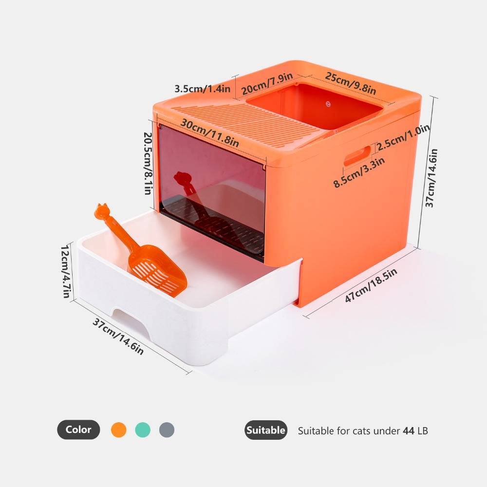 【Эффективно предотвращает попадание кошачьего туалета на дно 】: Дверь ящика для мусора-это односторонний дизайн. После того, как кошка входит, она не может выйти через дверь. Он может выходить только сверху. Крышка сверху имеет много небольших отверстий. Подстилка, которую носит кошка, возвращается в ящик для мусора.