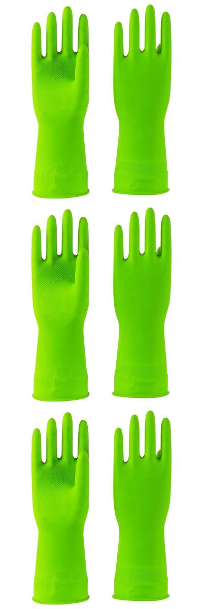 Защищают руки воздействия моющих, чистящих средств, воды.Перчатки помогают избегать травмирования кожи на руках. Также защищают её от неблагоприятных воздействий при самых разнообразных видах деятельности, например, при работе на даче или в гараже.Перчатки оградят ваши руки от порезов, а также случайного травмирования и нежелательного соприкосновения с бытовой химией. Материал: Перчатки изготовлены из высококачественного латекса. Строение:Благодаря хлопковому покрытию не прилипают к рукам. Их удобно снимать и надевать.Они имеют микроскопические поры, которые прекрасно впитывают влагу. В комплекте : 3 шт.