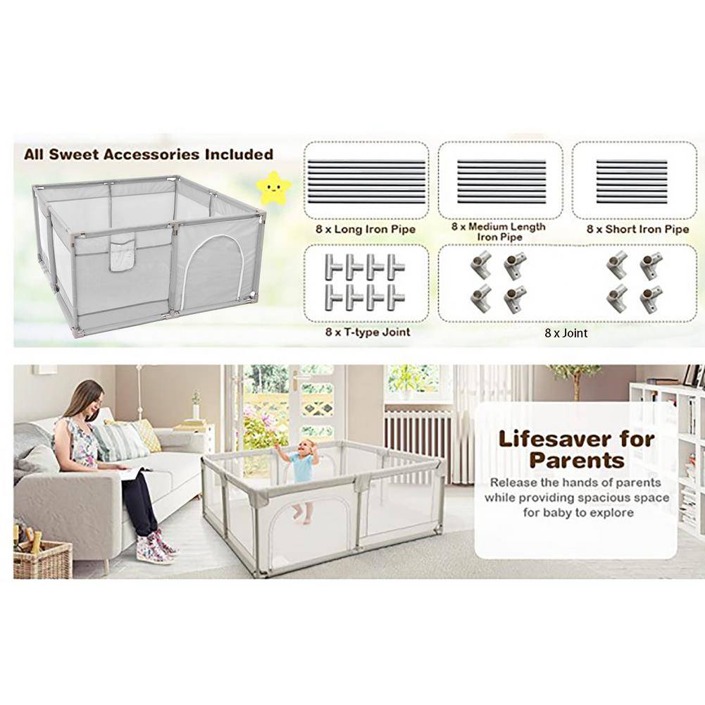 1. Детский манеж без зазора: Изготовлен из износостойкой, износостойкой катионной ткани и прочной стальной трубы. В нижней части 4 прочных Противоскользящих присоски, которые не легко перемещать или наклонять. Была добавлена плотная губка, чтобы дети не сталкивались друг с другом во время игры. В то же время, наш забор полностью обернут мягкой тканью, нет открытого зазора и опасности защемления, поэтому он безопаснее, чем у других детских заборов.