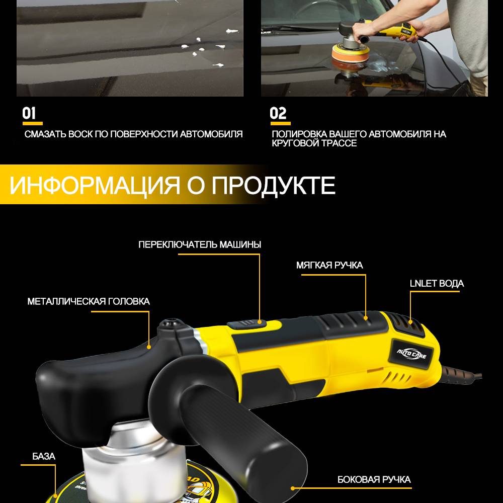 Машинка Для Полировки Автомобиля AUTOCARE-это полировщик двойного действия для свежей руки, который быстро и легко удаляет царапины и закручивается, чтобы вернуть краску к зеркальному блеску с минимальной усталостью и максимальным комфортом.