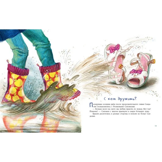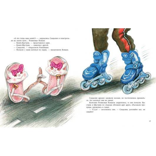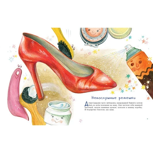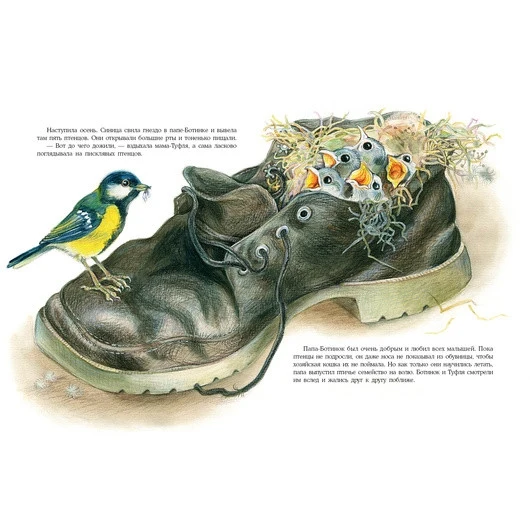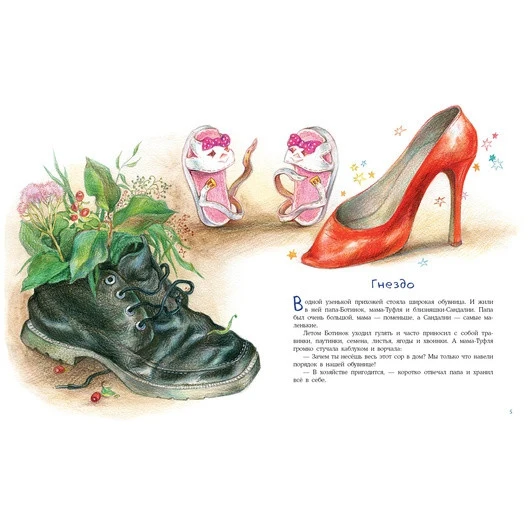 The heroes of this unusual history are a real family, living... in the shoe! A large Dad-shoe, a neat mother-shoe and restless sisters-sandals. Everyone lives fun and friendly, and something interesting happens to them all the time. Young readers will be happy to find out who was helped by a caring dad, how mom taught her daughters to tie straps, who was met by sisters and who was not caught in the shoes.