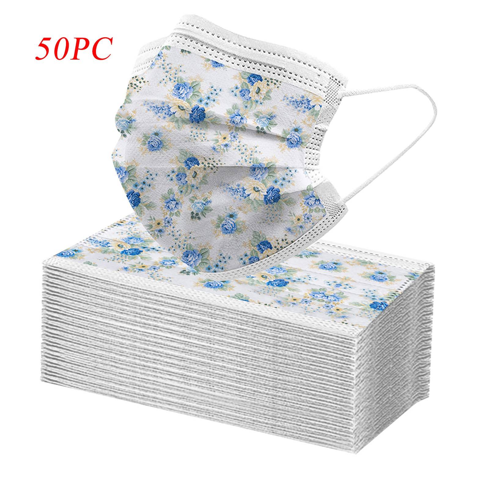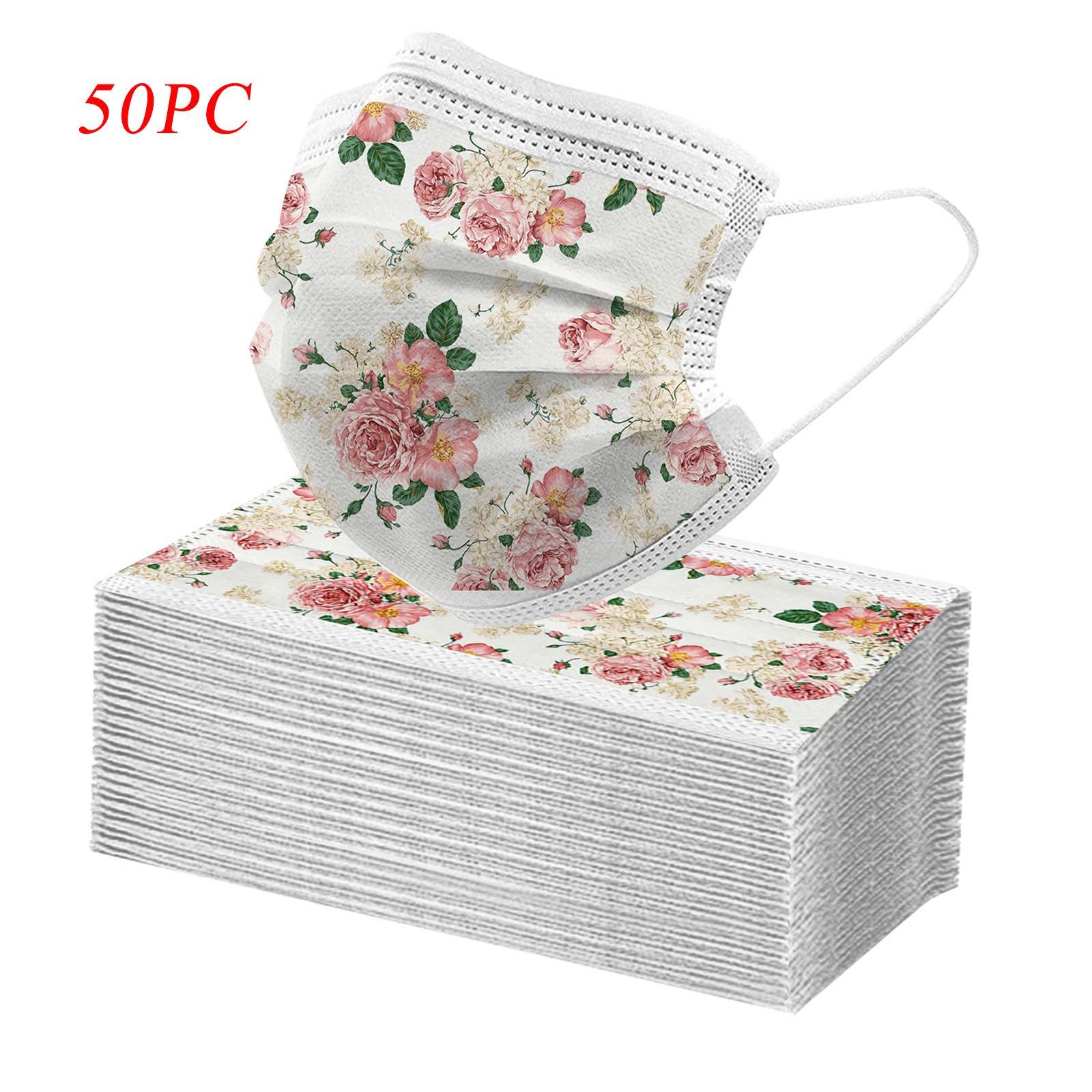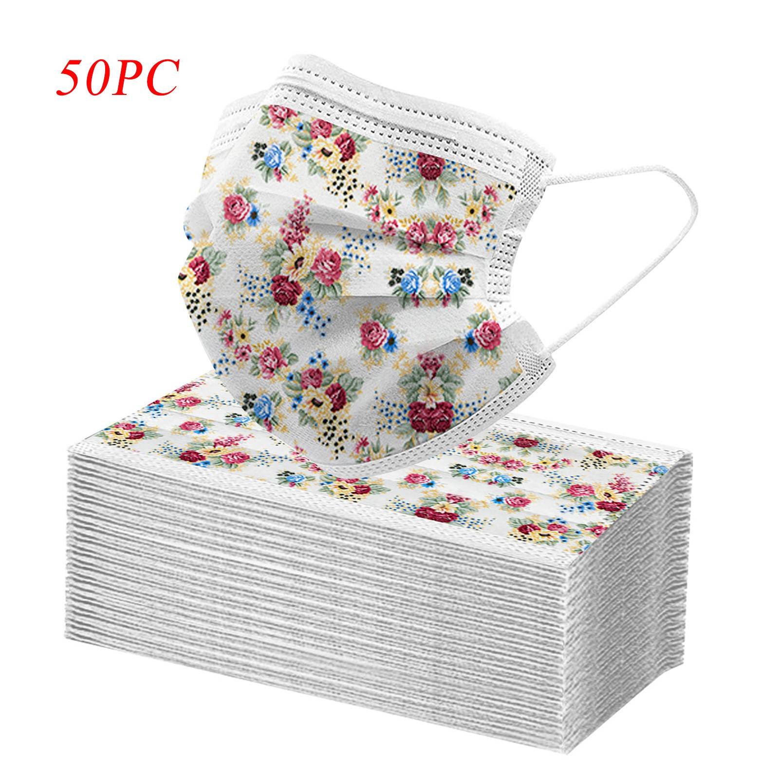 50 шт. взрослых красивый элегантный кардиган, с цветочным принтом, дышащая 3-Слои одноразовые маски