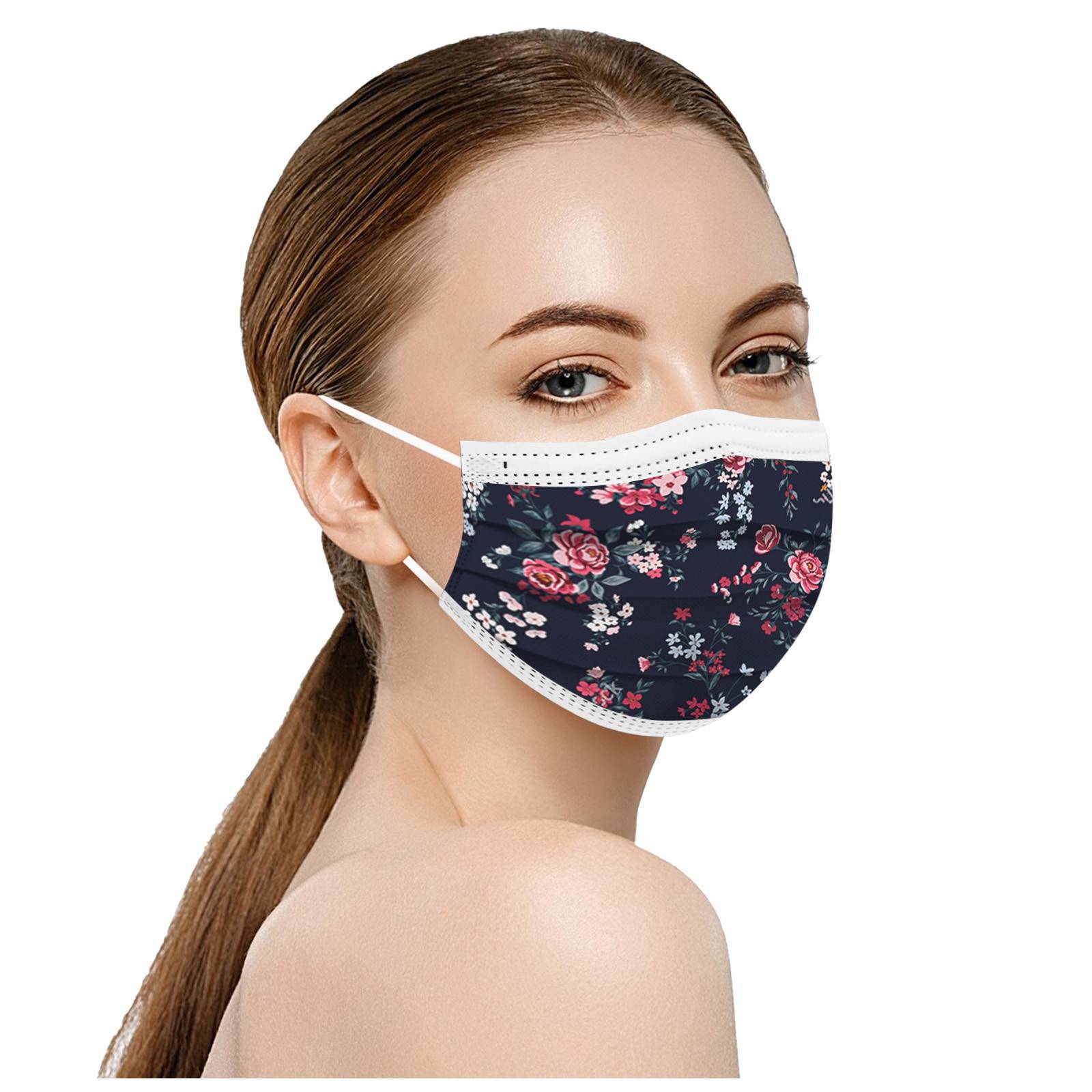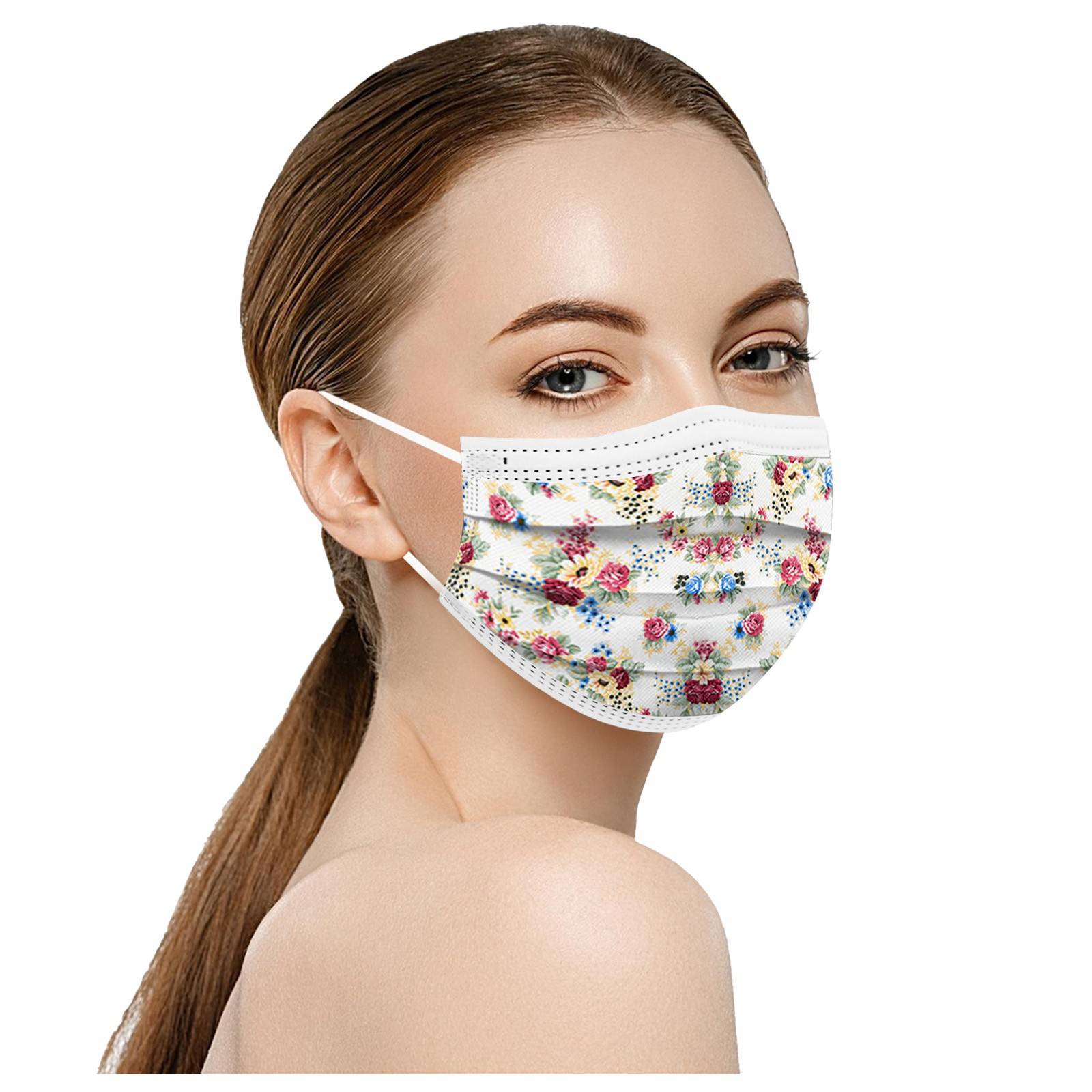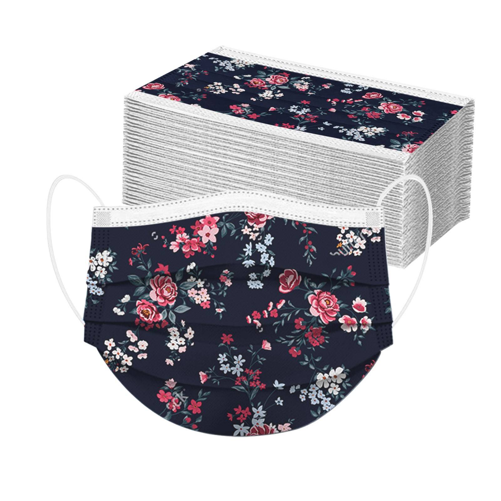 50 шт. взрослых красивый элегантный кардиган, с цветочным принтом, дышащая 3-Слои одноразовые маски