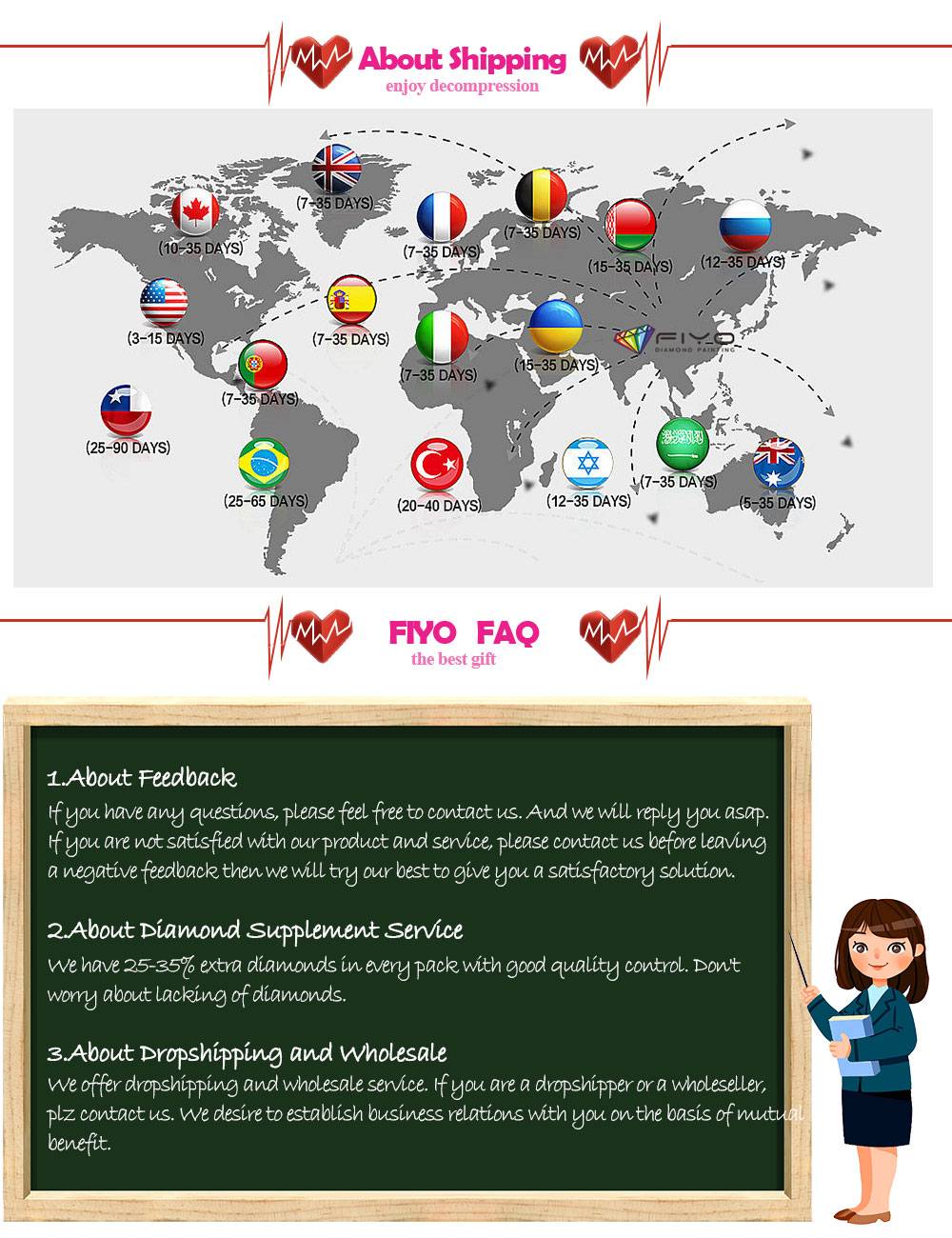 【Пожизненная гарантия, быстрая доставка 】:FIYO предоставляет crafters лучший опыт алмазной живописи. Мы гарантируем защиту от дефектов материалов и изготовления. Мы также предлагаем бесплатную защиту от недостающих алмазов. Все заказы отправляются в течение 48 часов.