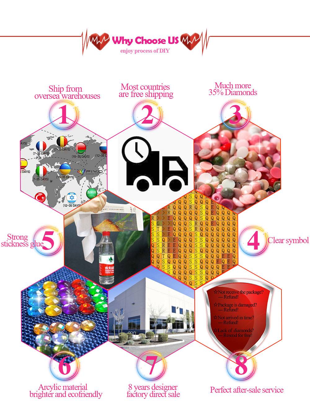 【Snug, блестящие алмазы 】:FIYO использует Акриловые АЛМАЗЫ, которые соответствуют оригинальным DMC цветам, которые дают вам в два раза больше блеска и отличный мозаичный вид.