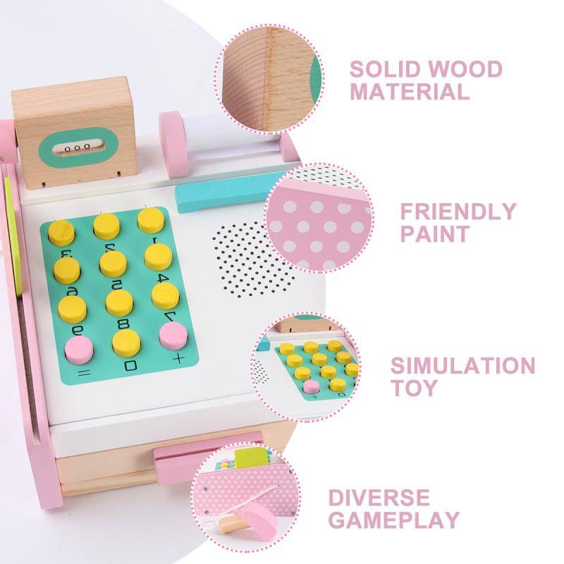 Изготовлен из древесного материала для долговечности и использования. Высокое качество делает эти детские игровые наборы для кассовых аппаратов прочными и прочными, эта игра для покупок удовлетворит ваших детей в течение многих лет шоппинга. Наши детские игровые наборы для кассовых аппаратов безопасны для детей.