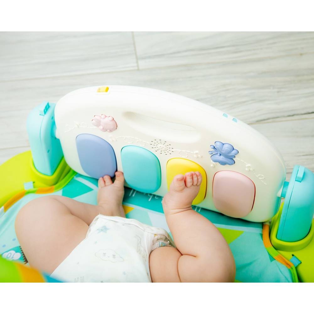 Пианино, расположенное в ногах ребенка, помогает малышу проявлять физическую активность, играя ножками на разноцветных клавишах. В музыкальный блок включено 5 режимов звучания и 80 увлекательных мелодий. Пианино работает на батарейках. Когда малыш подрастет, то пианино можно поставить горизонтально, и оно будет занимать его еще долгое время, даже когда он научится ходить.