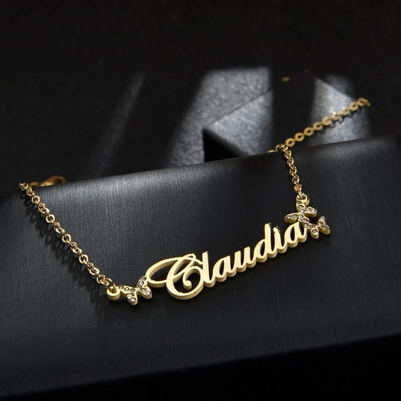 Название: 365 Пользовательское Имя Ожерелья Звезда Сердце Бабочка с цирконием камни кулон-табличка с именем из нержавеющей стали персонализированные женские ювелирные изделия