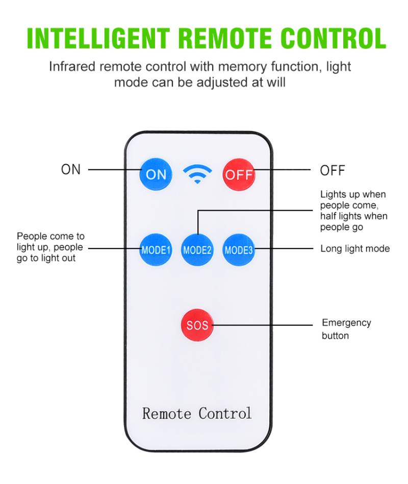 -Автоматическое включение: датчик движения PIR может сканировать источник тепла, который непрерывно перемещается в пределах диапазона обнаружения. Когда кто-то появится в области, светильник автоматически включится.
