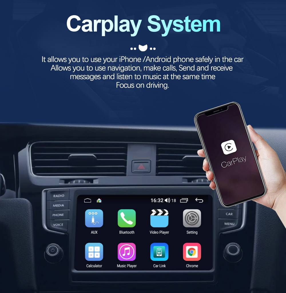Он позволяет безопасно использовать ваш iPhone /Android телефон в carAllows вам использовать навигацию,