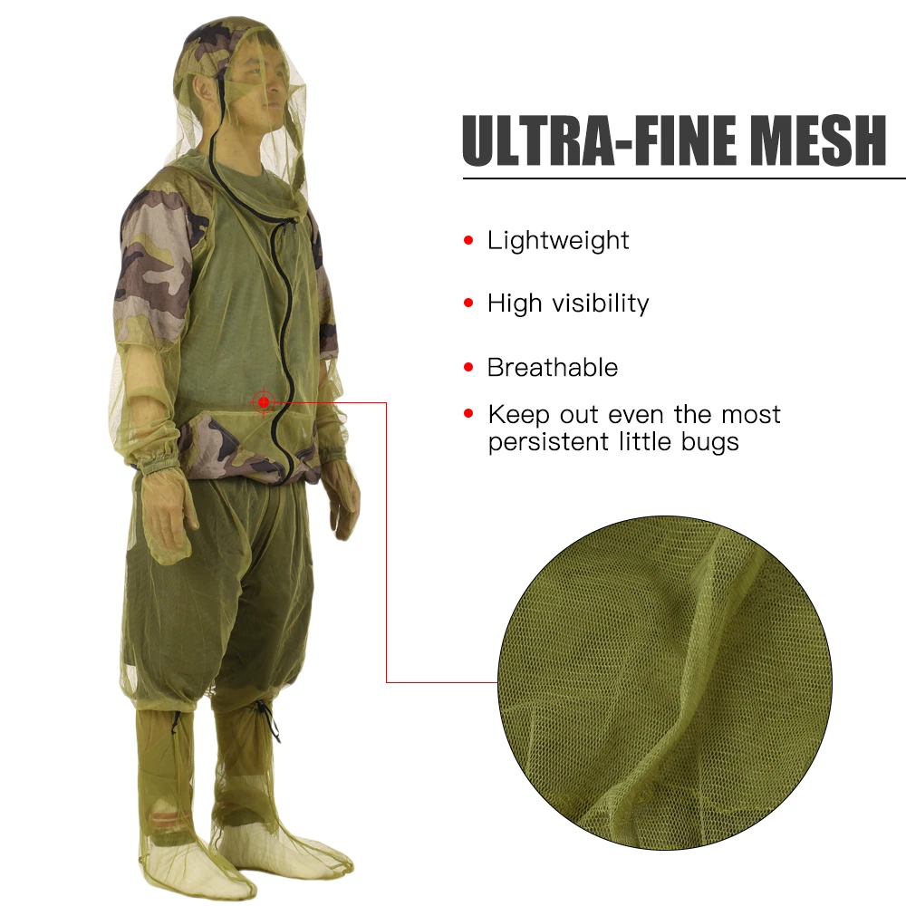 Всесторонняя защита: одна куртка с капюшоном, одни штаны, пара перчаток и пара Гетр для защиты вас от насекомых и жуков во время охоты, кемпинга и рыбалки.
