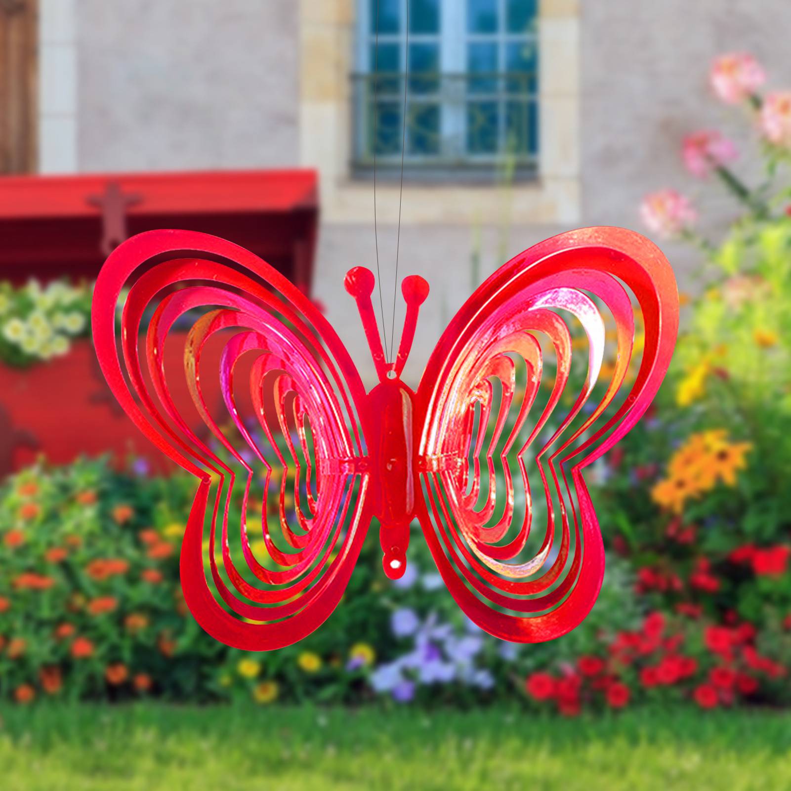 1. Светоотражающая вращающаяся ветряная мельница с бабочками: Светоотражающая вращающаяся ветряная мельница с бабочками яркая по цвету и уникальная по форме. Это идеальное садовое украшение. Он может автоматически вращаться, когда дует ветер.