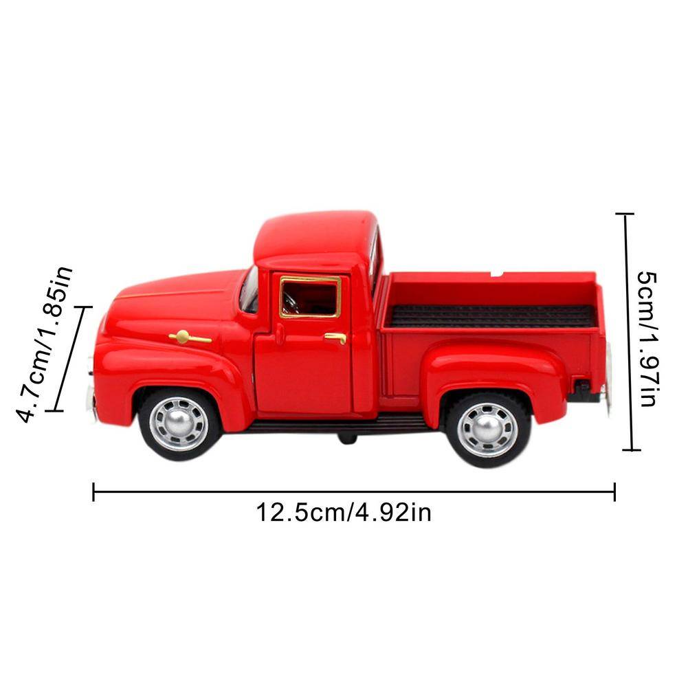4 、 идеальный Размеры: Размеры этого Ретро грузовик составляет около 12,5*4,7*5 см/4,92*1,85*1,97 дюйма, и колеса для грузовика не будет скатываться. Это лучший вариант для украшения рождественской елки и настольных украшений.