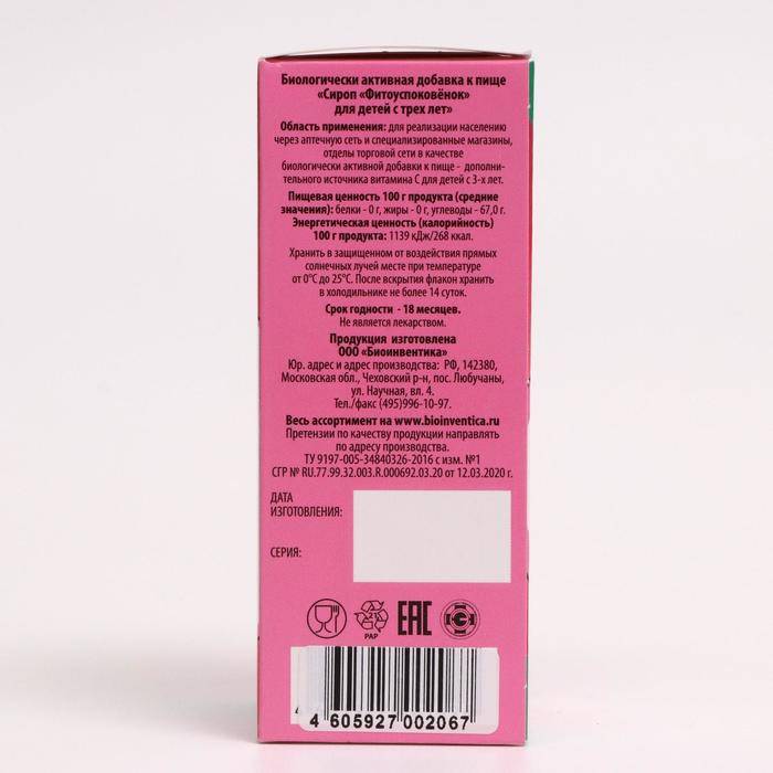 | Назначение | Для детей, Для нервной системы, Успокоительное |
