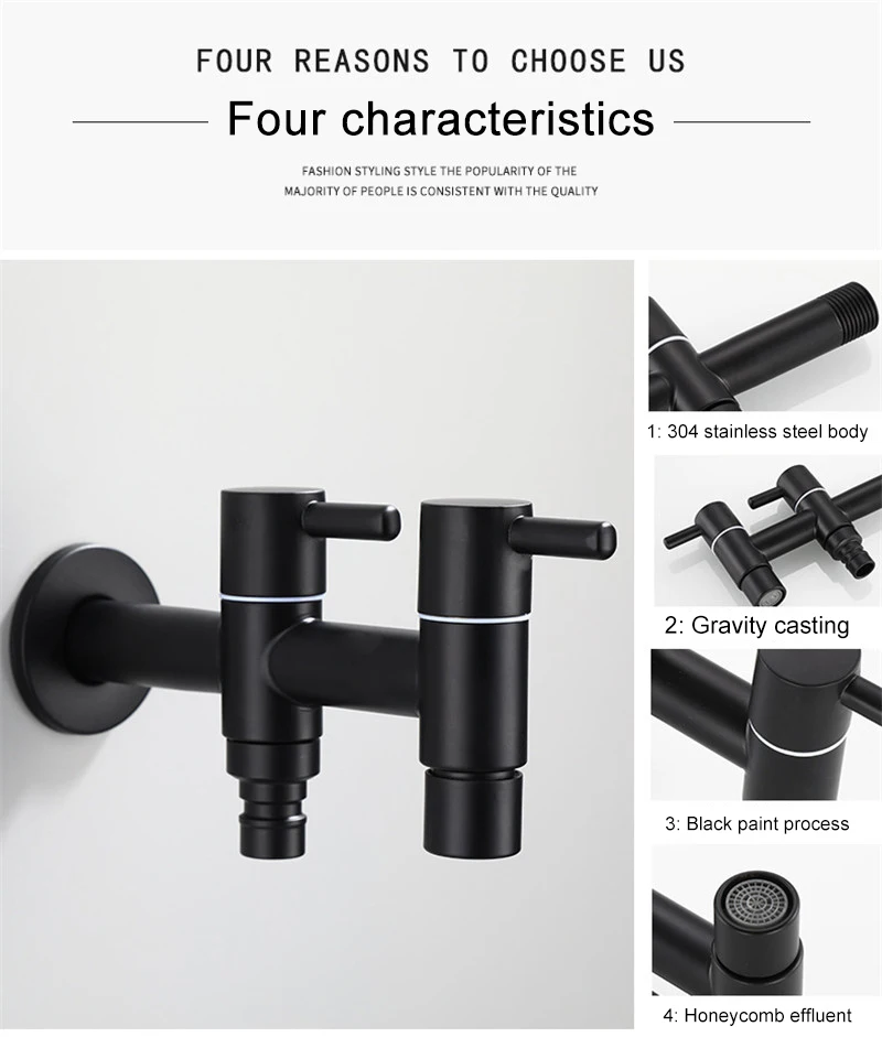 Черный кран из нержавеющей стали ванная комната Стиральная машина кран Швабра краны Туалет угловой кран двойное использование