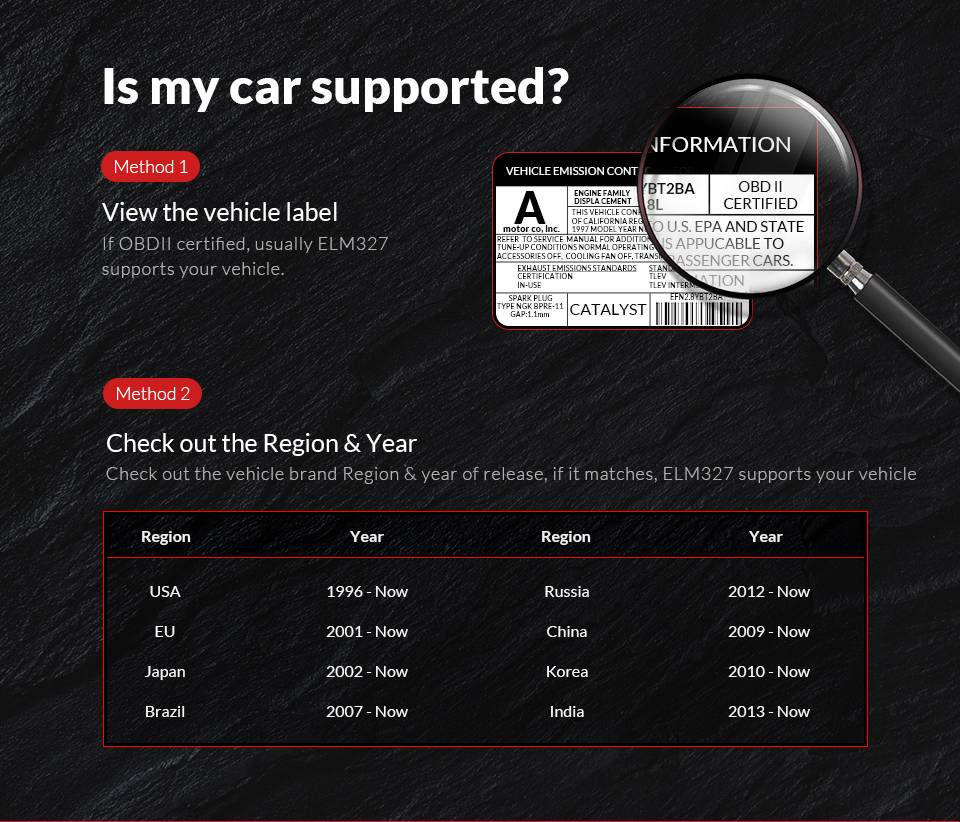 Наш ELM327 WIFI V1.5 подходит для всех транспортных средств OBD2/ OBDII, обычно более новых, чем автомобили, не будет иметь никаких проблем. Стандартный диапазон OBD2 для справки: американский автомобиль должен быть после 1996 года; Автомобиль на базе ЕС после 2004 года; Азиатский автомобиль после 2007 года