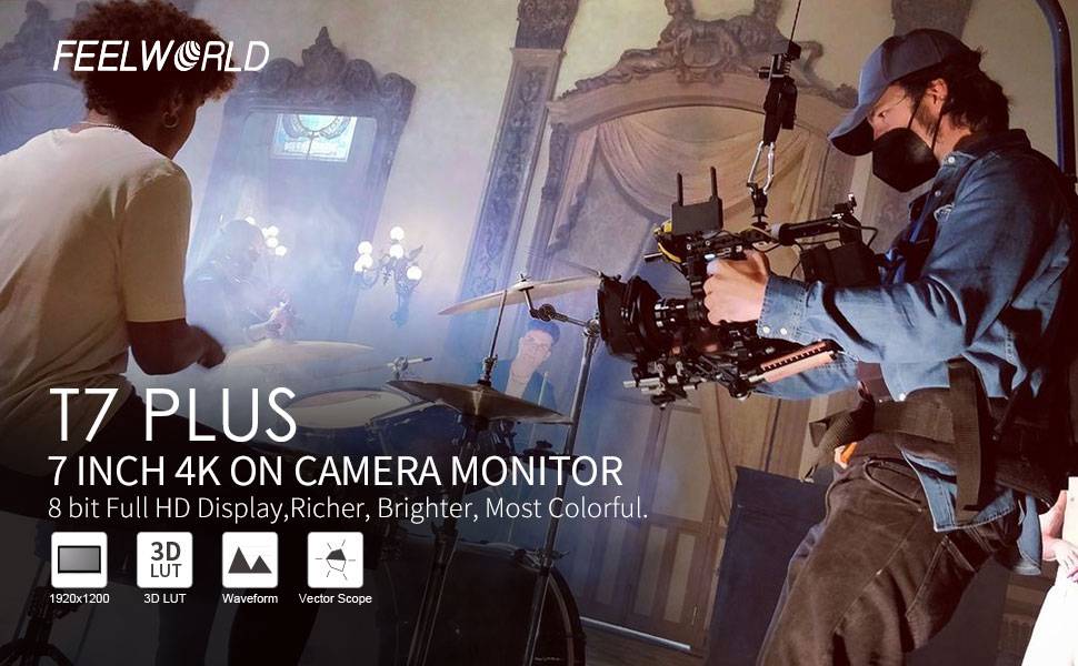 FEELWORLD T7 плюс-это 7-дюймовый full HD накамерный монитор. Он имеет корпус из алюминиевого сплава, прочный; Простой дизайн интерфейса кнопки обеспечивает уверенность в эксплуатации; Поддерживает 4K HDMI @ 30 Гц вход сигнала и выход. Для функции Он обновляет форму волны, гистограмму, векторную область, 3D LUT на основе T7. Обеспечивает больше деталей цвета и экспозиции изображения, оптимизирует рабочий процесс и повышает эффективность работы.