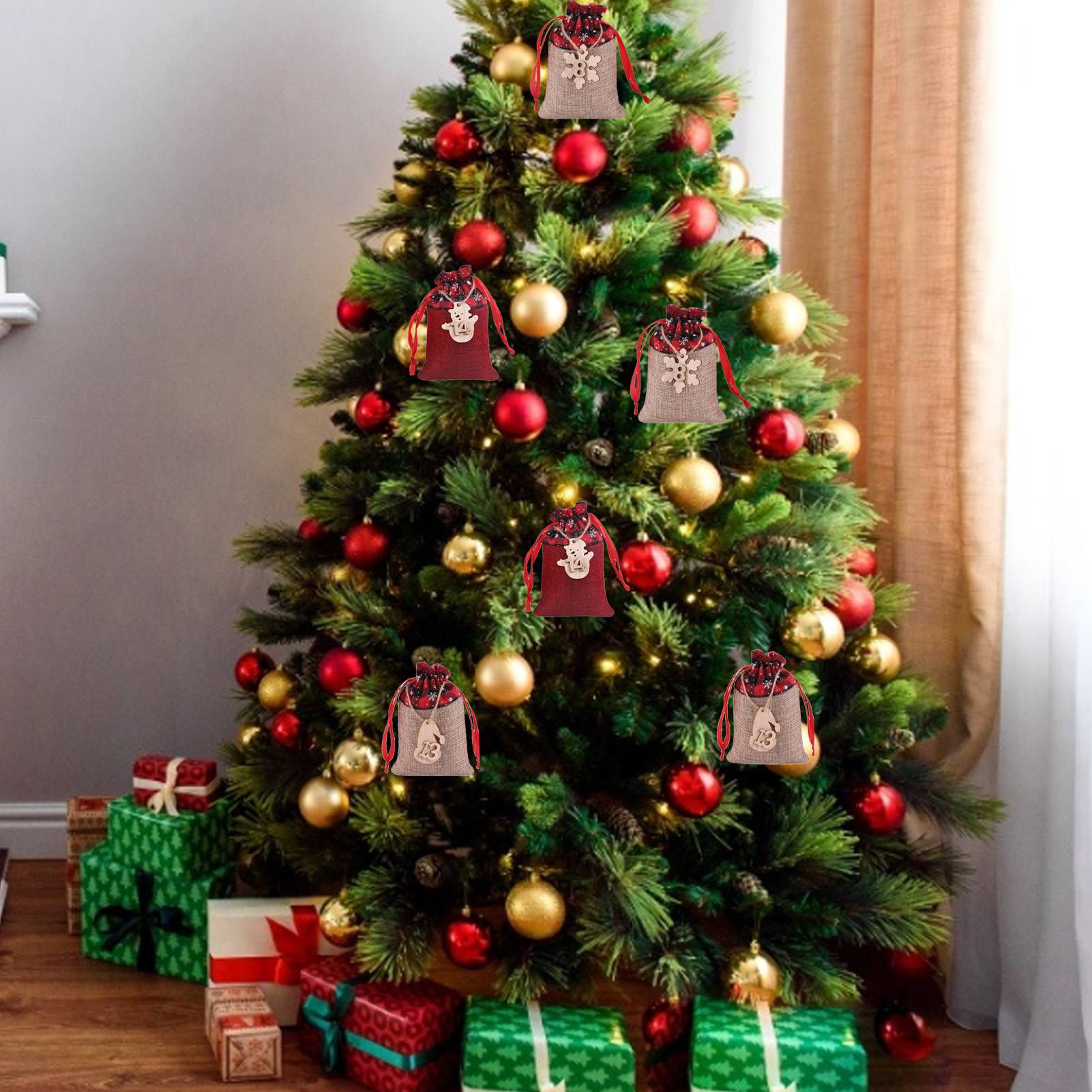 Наименование: Рождественский комплект в клетку, Подарочная сумка с обратным отсчетом