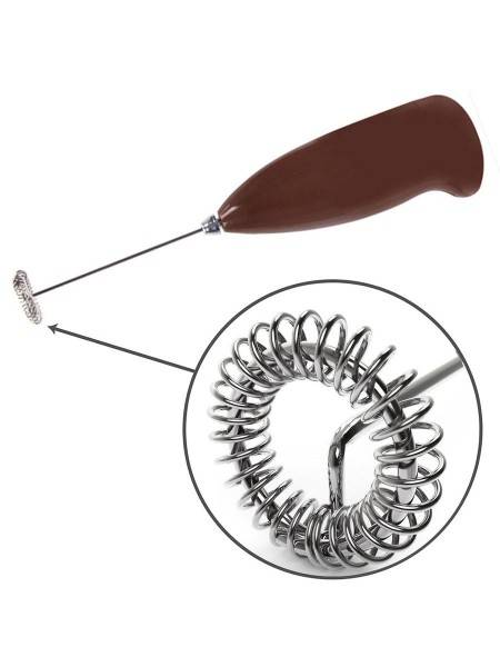 Вспениватель имеет один режим работы. Венчик из нержавеющей стали легко справляется с молоком любой жирности. Для работы устройства используются две батарейки типа АА (в комплект не входят).