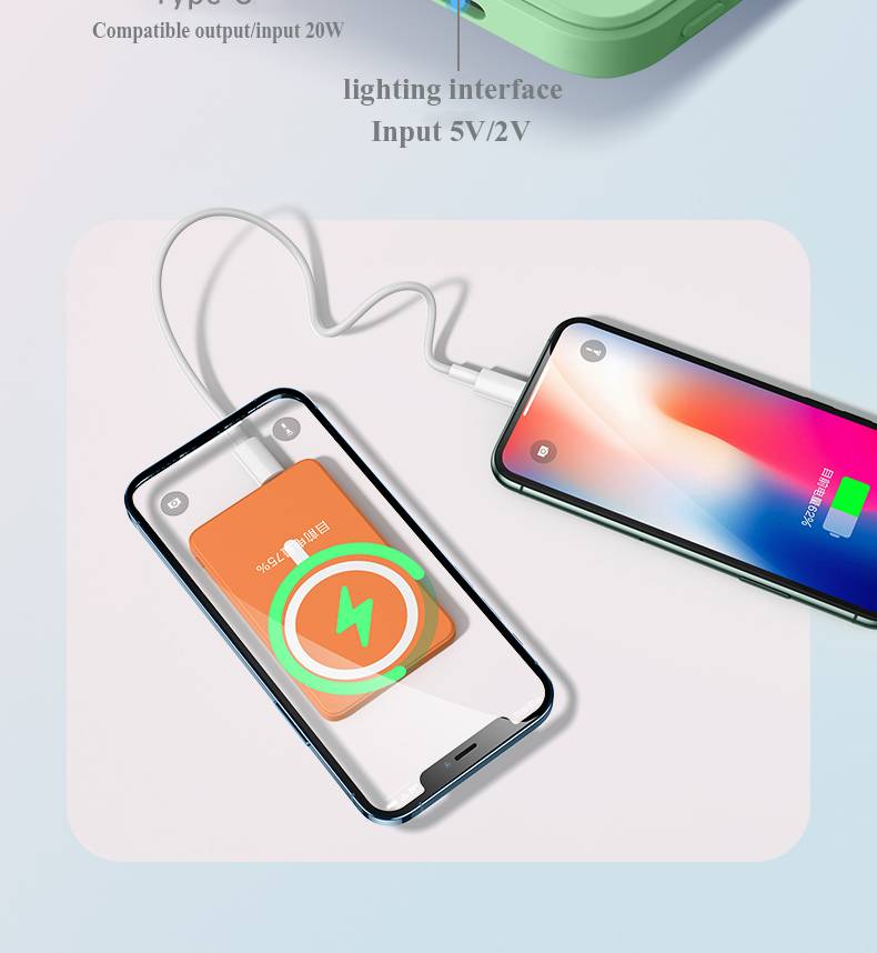 1. Pd20w Магнитный поглощающий Внешний аккумулятор + Беспроводная зарядка 15 Вт