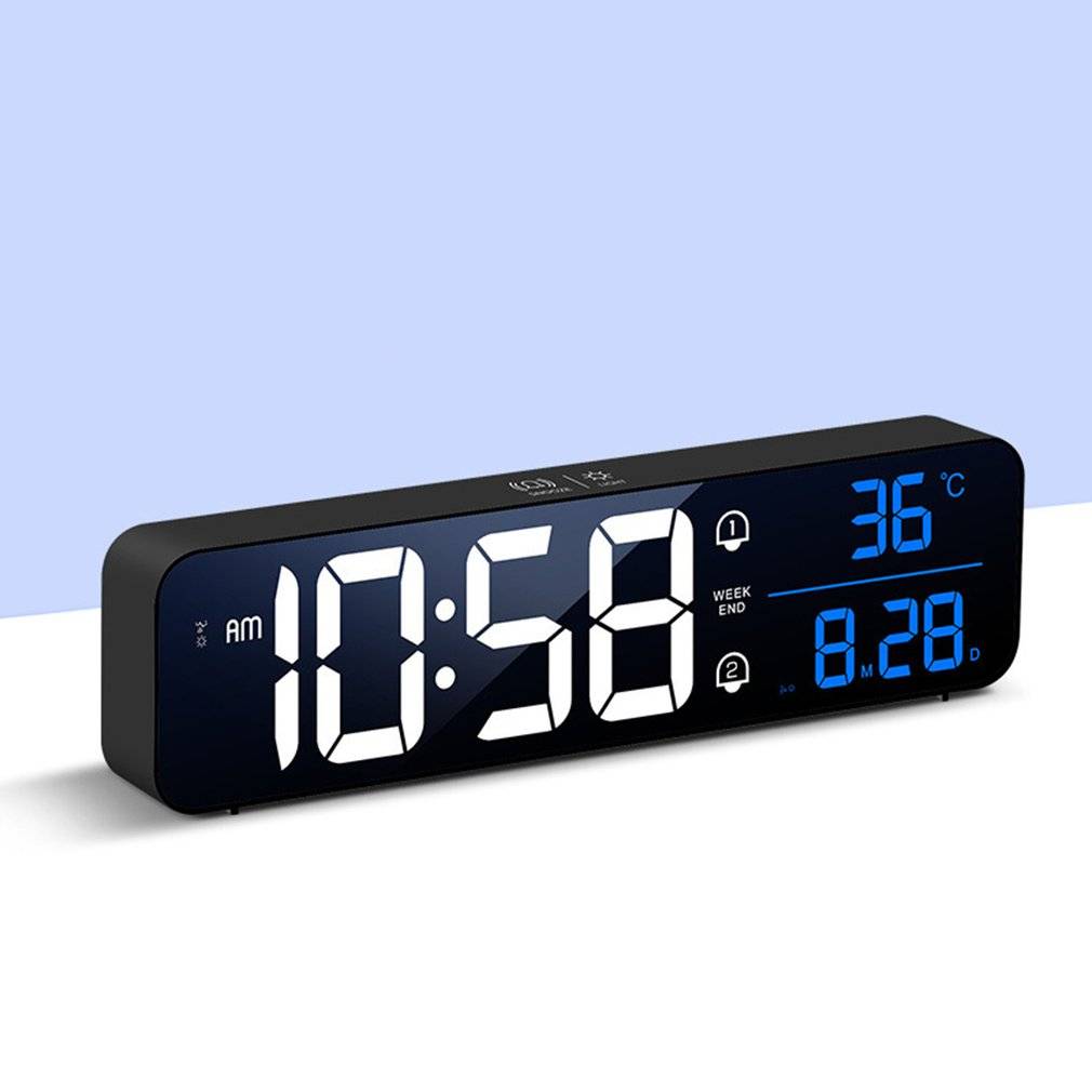 2. Дисплей: эти часы-будильник может осуществить один и тот же экран светодиодный цифровой Дисплей времени, даты и температуры, а также яркость 5-уровневый светодиодный Дисплей может быть отрегулировано.