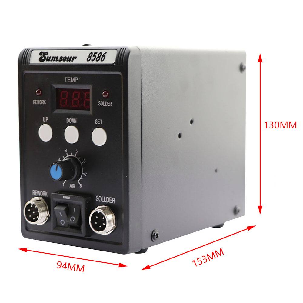 Это совершенно новая паяльная станция 2 в 1 SMD 8586. Металлический корпус из сплава с высококачественным силиконовым корпусом отличается элегантным внешним видом и энергосбережением. Вы можете использовать пистолет горячего воздуха и паяльник отдельно, без помех друг с другом.