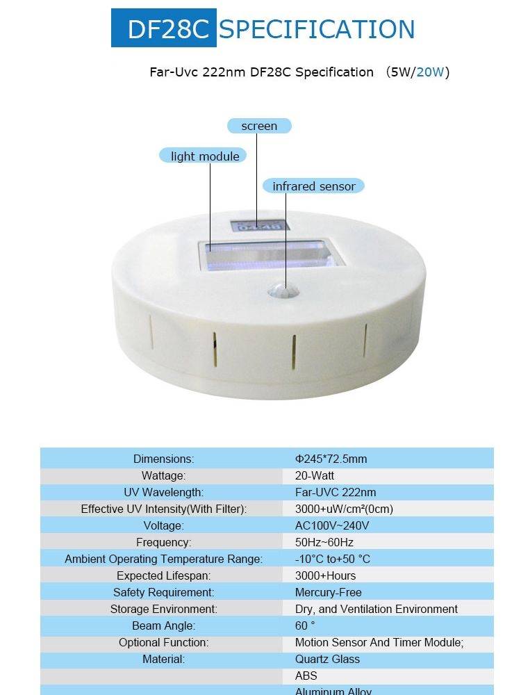 Дезинфекция серии QNICE 222nm FAR-UVC DFИнновация FAR-UVC, QNICE 222nm DF-серия приложений-это новый щит в борьбе с супер вирусом. DF-серия новаяИнструмент, который эффективно и безопасно деактивирует воздушно-десантные вирусы.Специальное издание-20 Вт-222нм Far Uvc Excimer светильник
