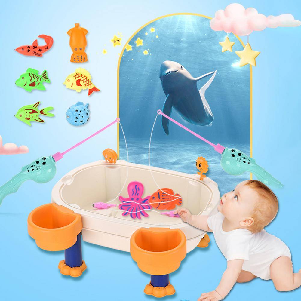 1. Набор игрушек для рыбалки: Этот набор для рыбалки очень подходит для вашего ребенка. Этот набор является хорошим способом вовлечения вашего ребенка, и он может способствовать развитию ранних навыков и характера. С помощью этого набора игрушек для рыбалки вы можете заполнить контейнер для рыбы, и ваш ребенок может собрать и подсчитать количество рыбы!
