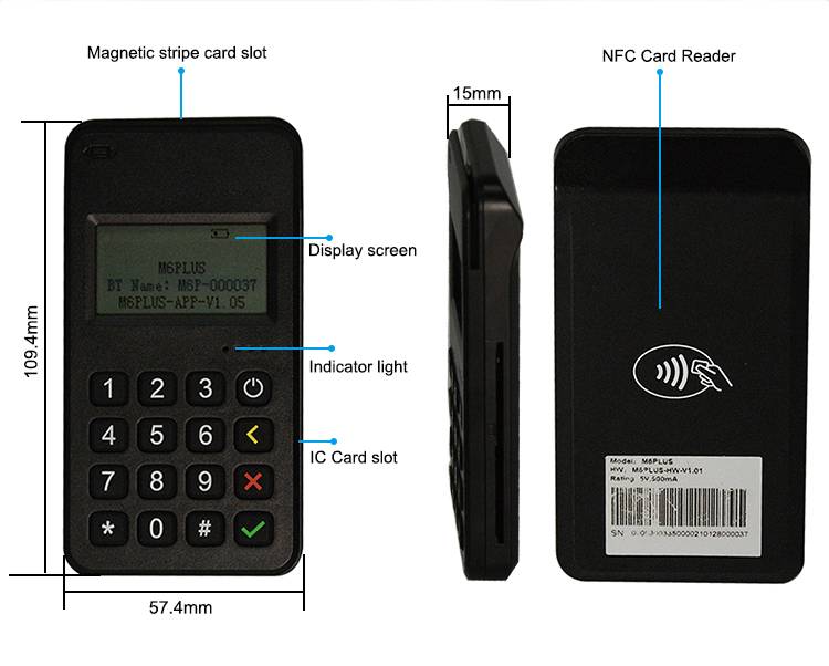 MPOS M6 PLUS является инновационным мобильным платежным терминалом, подключается к мобильным телефонам и другим смарт-устройствам через Bluetooth, в сочетании с несколькими приложениями и сетями, обеспечивая портативное интеллектуальное решение для мобильного запроса, оно маленькое и портативное, простая работа, безопасная и надежная.