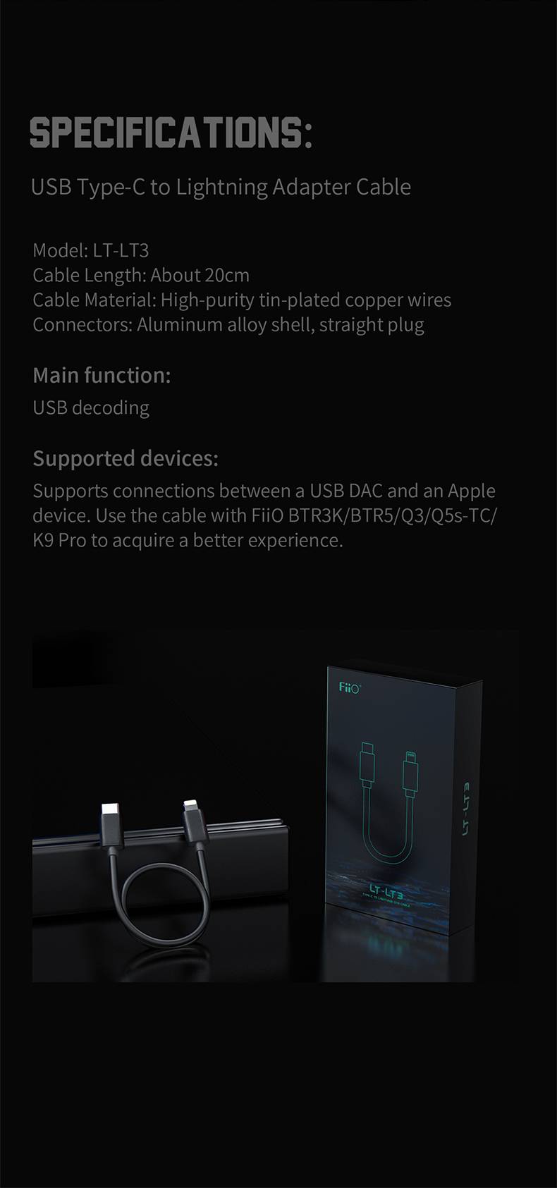 Fiio LT-LT3 20 см кабель Type-C для Lightning OTG для iOS Connect BTR5 BTR3K Q3 Q5S-TC K9