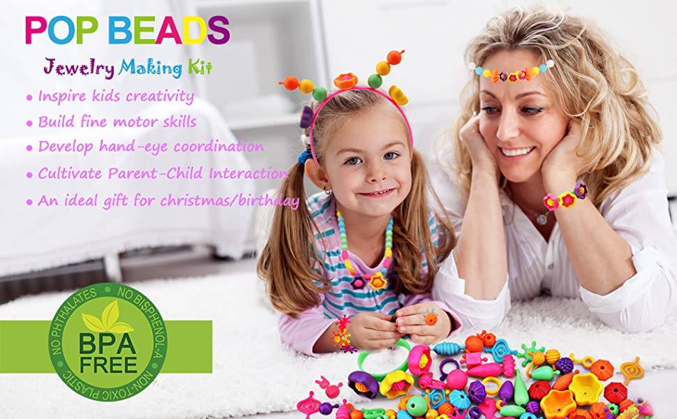 Развивайте воображение и творческие способности ребенка.Дети могут создавать различные формы с их воображением с помощью этого набора поп-бусин. Создание повязок для волос (уникальный стиль на рынке), браслетов, ожерелий и колец с сотнями различных комбинаций для содействия восприятию детей и различному цвету, повышения их эстетической привлекательности и визуального восприятия.