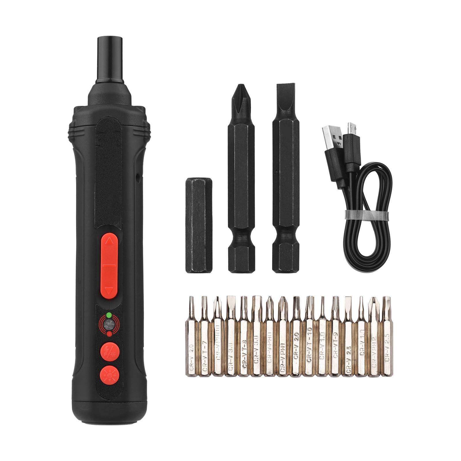 Беспроводная отвертка легкая и простая в обращении. Оснащен передним 2 светодиодами, рабочий светильник, задний флэш-светильник и 19 отвертками. Много требует, одно решение. Идеально подходит для небольших DIY работ, декоративных работ, технического обслуживания и т. Д.