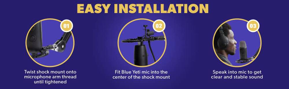 Специально разработанный для Blue Yeti, Blue Yeti Pro USB и Blue Snowball микрофоны, ударное крепление может изолировать микрофон от шумов и вибрации.